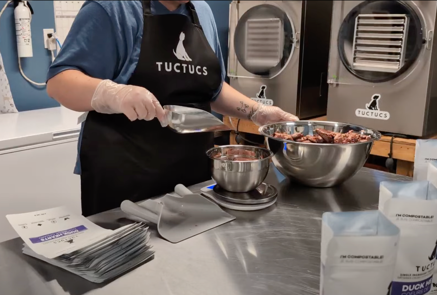 Every TucTucs treat starts in our small-batch facility in Brantford, Ontario. Unlike large-scale operations, we craft in smaller runs so we can personally see every single piece that goes in and out of our freeze-dryers. Each ingredient is hand-chopped, giving us full control over quality and consistency while ensuring only the best pieces make it into your pet’s bag.