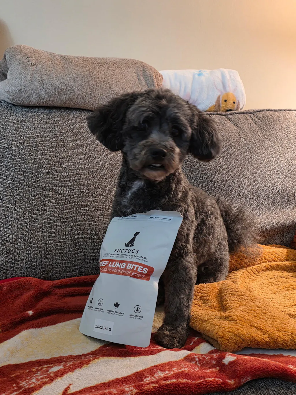 Every TucTucs treat starts with carefully selected, human-grade ingredients chosen with your pet’s health in mind. We source as locally as possible, working with trusted Canadian farms and fisheries whenever available. When local sourcing isn’t an option, we choose partners who follow responsible, humane practices — raising animals without unnecessary antibiotics or genetically modified inputs, and sourcing fish from cleaner, well-managed waters.