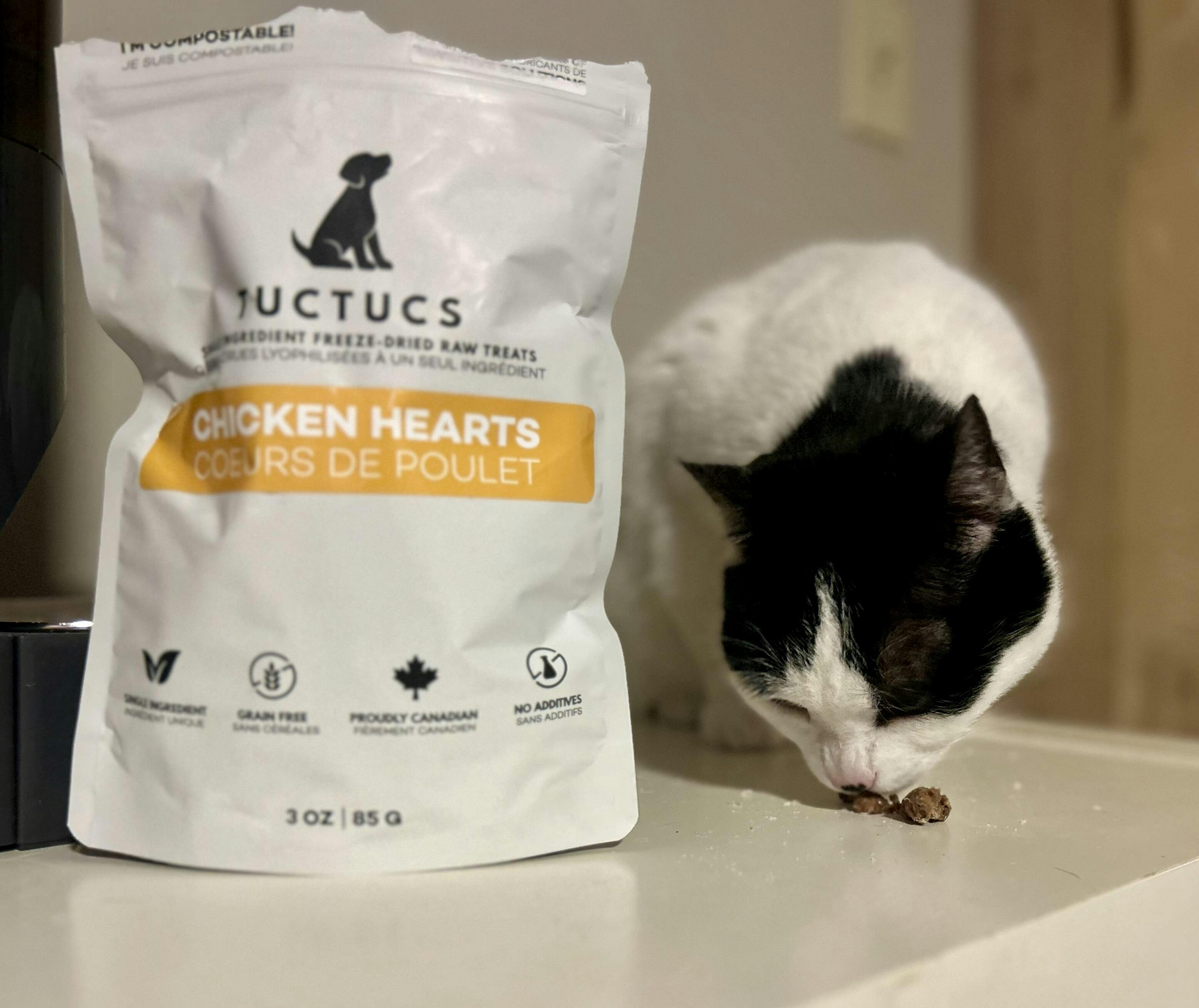 Every TucTucs treat starts with carefully selected, human-grade ingredients chosen with your pet’s health in mind. We source as locally as possible, working with trusted Canadian farms and fisheries whenever available. When local sourcing isn’t an option, we choose partners who follow responsible, humane practices — raising animals without unnecessary antibiotics or genetically modified inputs, and sourcing fish from cleaner, well-managed waters.
