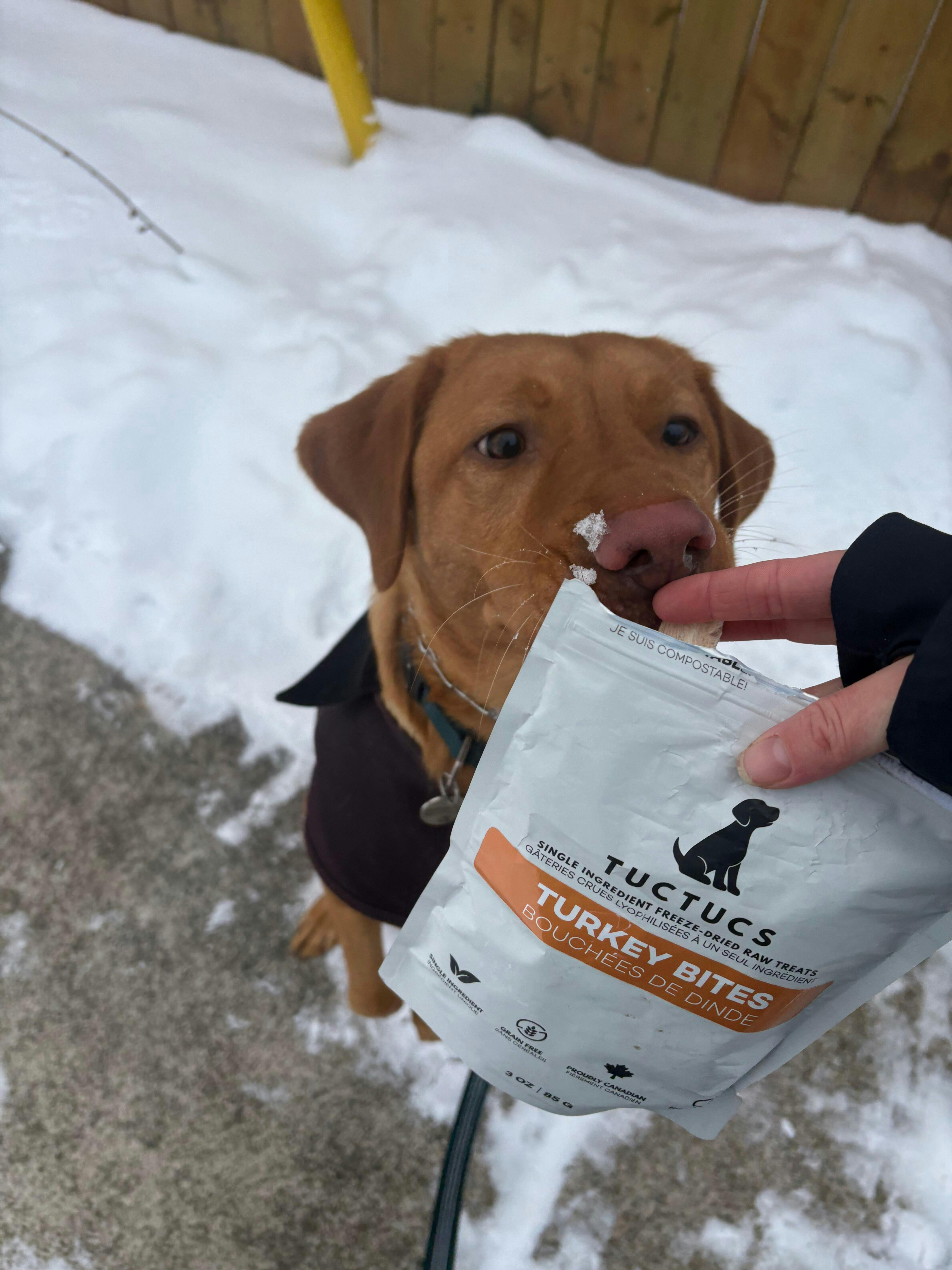 Our Turkey Bites are made with 100% human-grade turkey tenderloin, sourced from Ontario, Canada.