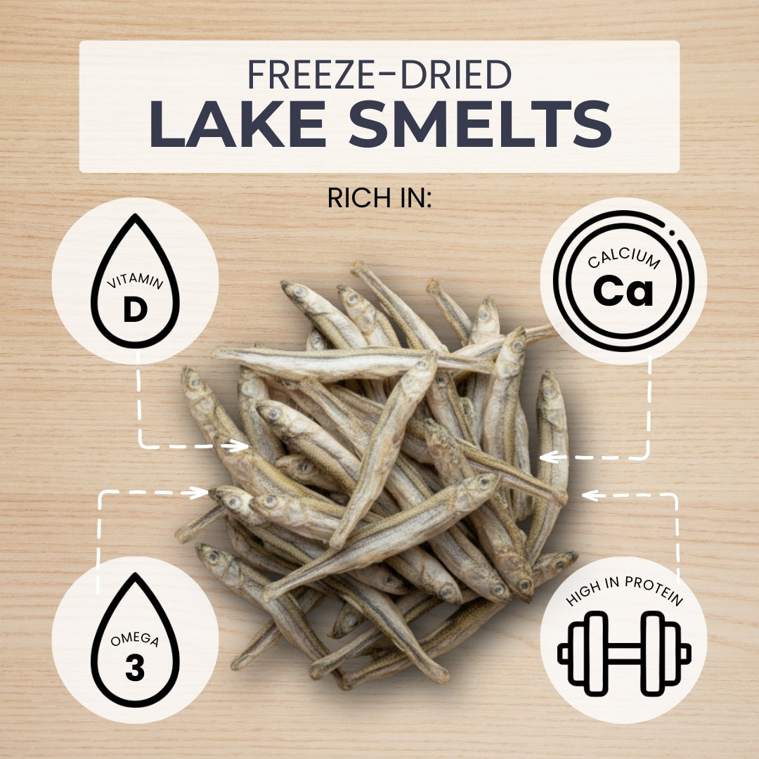 Our Lake Smelt are made with 100% human-grade whole smelts, sourced from Ontario, Canada.
