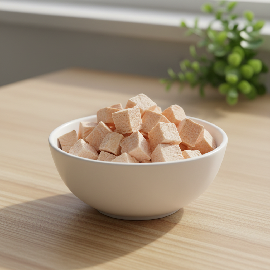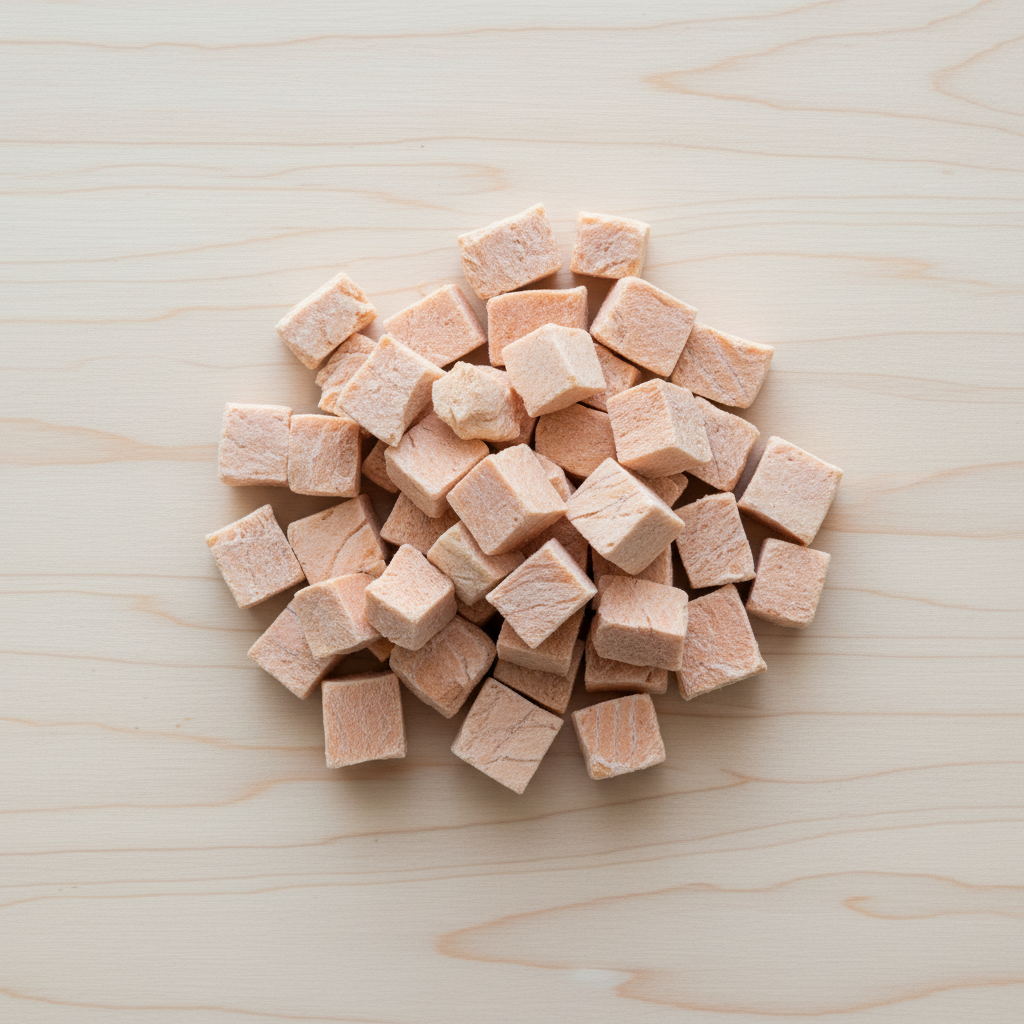 Salmon bites are packed with protein and rich in omega-3s for healthy skin, coat, and brain function. They also provide selenium, phosphorus, and vitamin B12 to support strong muscles, energy, and overall wellness.